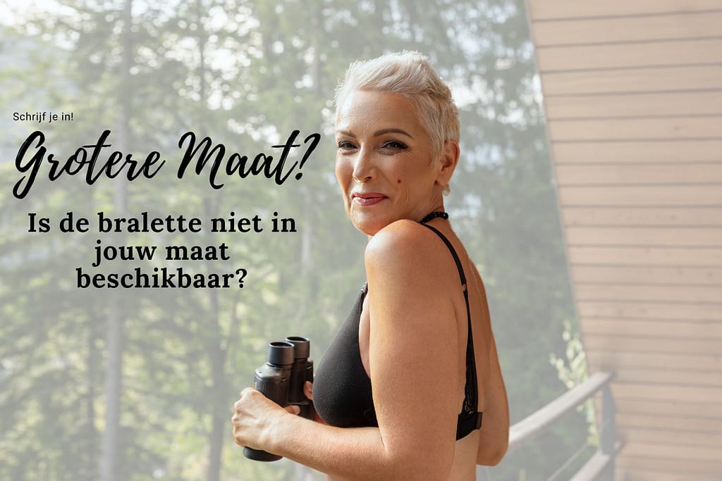 Wil je ook een zachte bralette van By Jeane maar staat jouw maat er niet bij? Op zoek naar een bh zonder beugel die je buste ook nog voldoende ondersteuning geeft en heb je een grotere maat? Schrijf je hieronder in en wij houden je op de hoogte van onze ontwikkelingen om onze ultrazachte bralette ook in grotere maten uit te brengen. Het ontwikkelen van de bralette voor de grotere maat doen we met grote zorgvuldigheid en daar nemen we graag de tijd voor.